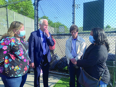 “The park needs to be redone, but there are a number of things to consider,” said Councilman Robert Holden, who was joined at the Shaler Avenue site by representatives from the offices of Assemblywoman Cathy Nolan, Assemblyman Andrew Hevesi and State Senator Joseph Addabbo Jr.
