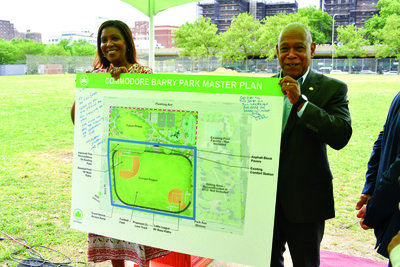 “We are excited to take the initial steps in reimagining and revitalizing Commodore Barry Park,” said New York City Parks Department Commissioner Mitchell J. Silver at Tuesday’s event. “As commissioner, I’ve prioritized working to ensure that all New Yorkers have access to quality parks, and I know how vital this greenspace is to the community it serves. We look forward to eventually breaking ground on these projects and improving these treasured assets.”