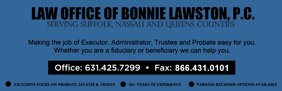 The Law Office of Bonnie Lawston, P.C., focuses exclusively on New York probate, estate and trust administration. More then 20 years of experience in probate matters from both sides of the fence, gives you a distinct advantage in handling your loved one’s estate or maximizing your inheritance by protecting your rights against the abuse of a fiduciary. We serve clients across the U.S. and outside the U.S. Home consultations are available. Find out how you can benefit from our experience. Law is in our name for a reason.