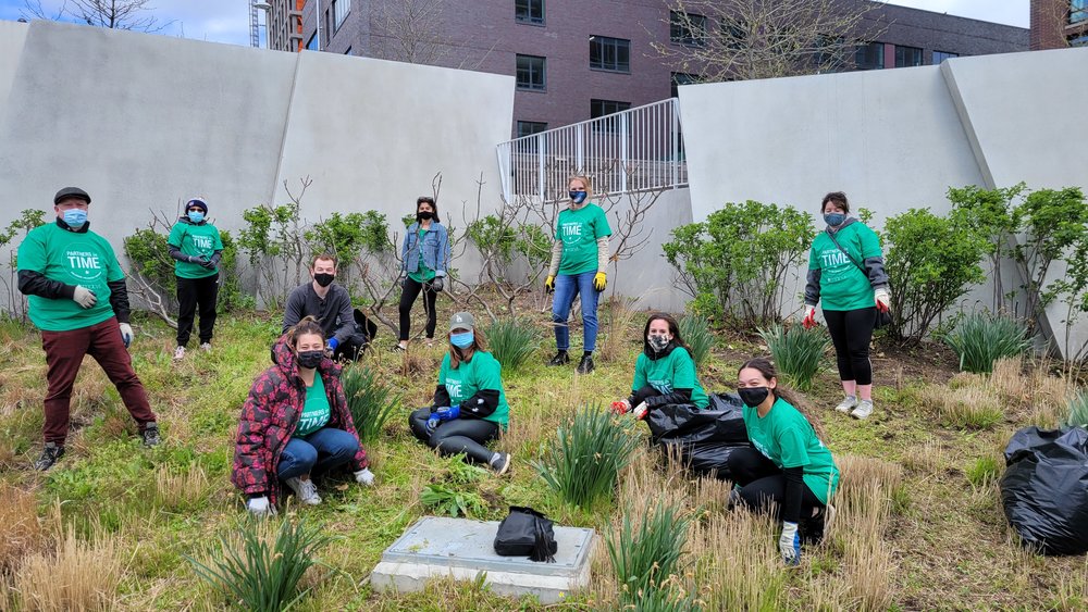 The city’s Department of Sanitation lended brooms and dustpans to the community cleanup effort.