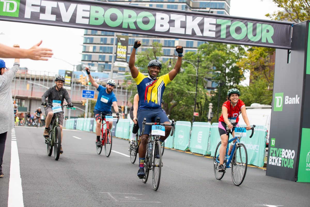 Bikers kicked off their 40-mile trek at 7:30 a.m. on Franklin Street in Downtown Manhattan, crossed over the Queensborough Bridge near the 15th mile and concluded in Staten Island. The Five Boro Bike Tour, in conjunction with TD Bank and the City, funds free bike education programs reaching thousands of New Yorkers.