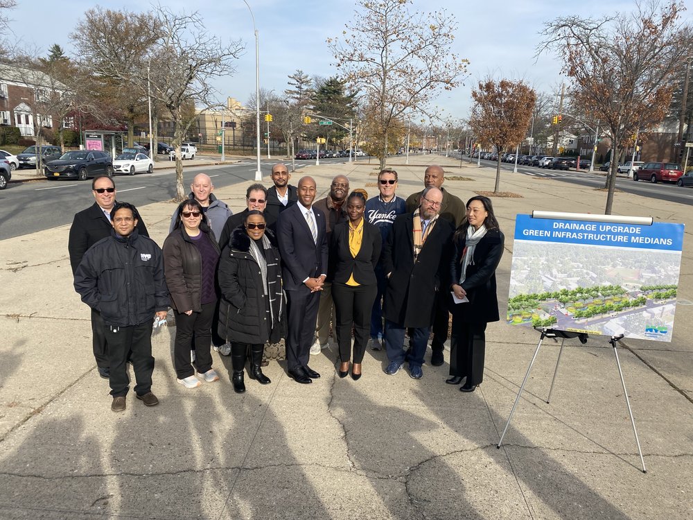 Department of Environmental Protection (DEP) Commissioner Vincent Sapienza says the seven new green spaces along Hillside Avenue will capture millions of gallons of stormwater, reducing local flooding and overflows of the sewer system.