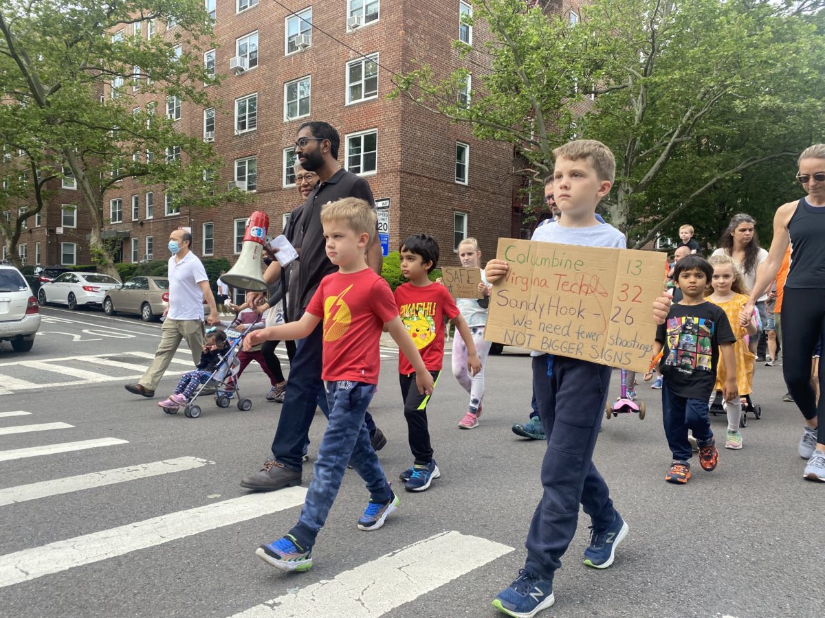 The rally-goers marched 21 blocks for the 21 victims, saying a victim’s name out loud after every block walked, and passing by seven city public schools that also line 34th Avenue.