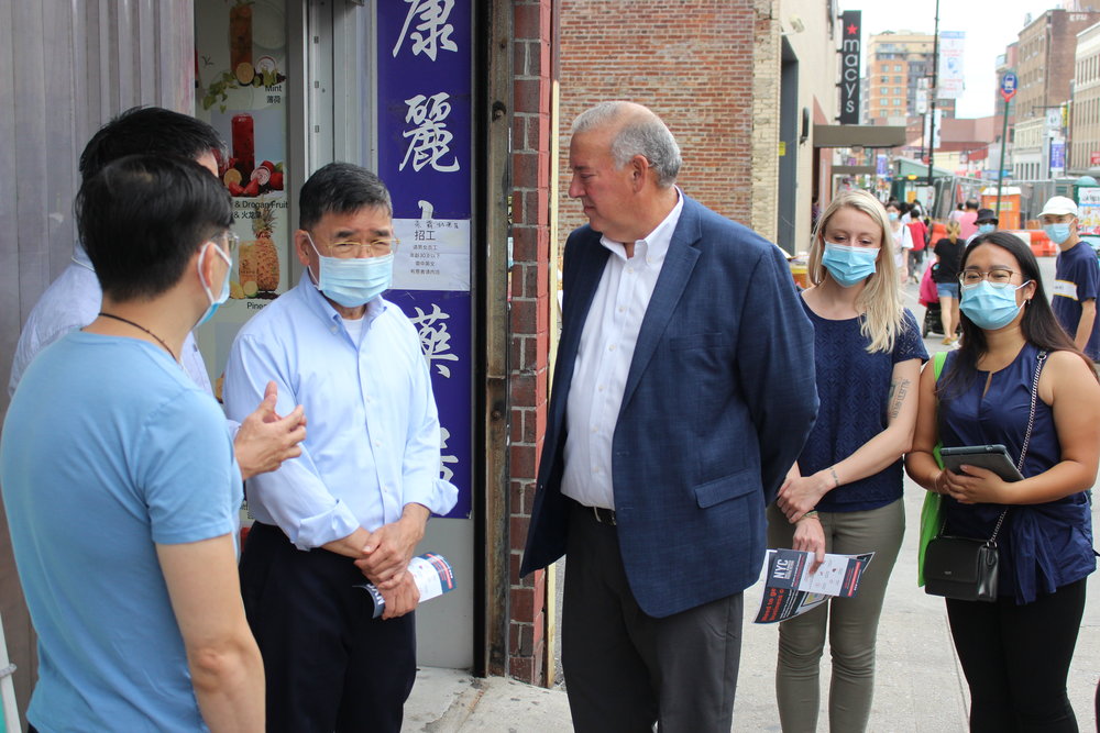 The Queens Chamber of Commerce partnered with Councilman Peter Koo for a walkabout, visiting a number of businesses in Flushing and informing them of resources available through the organization.