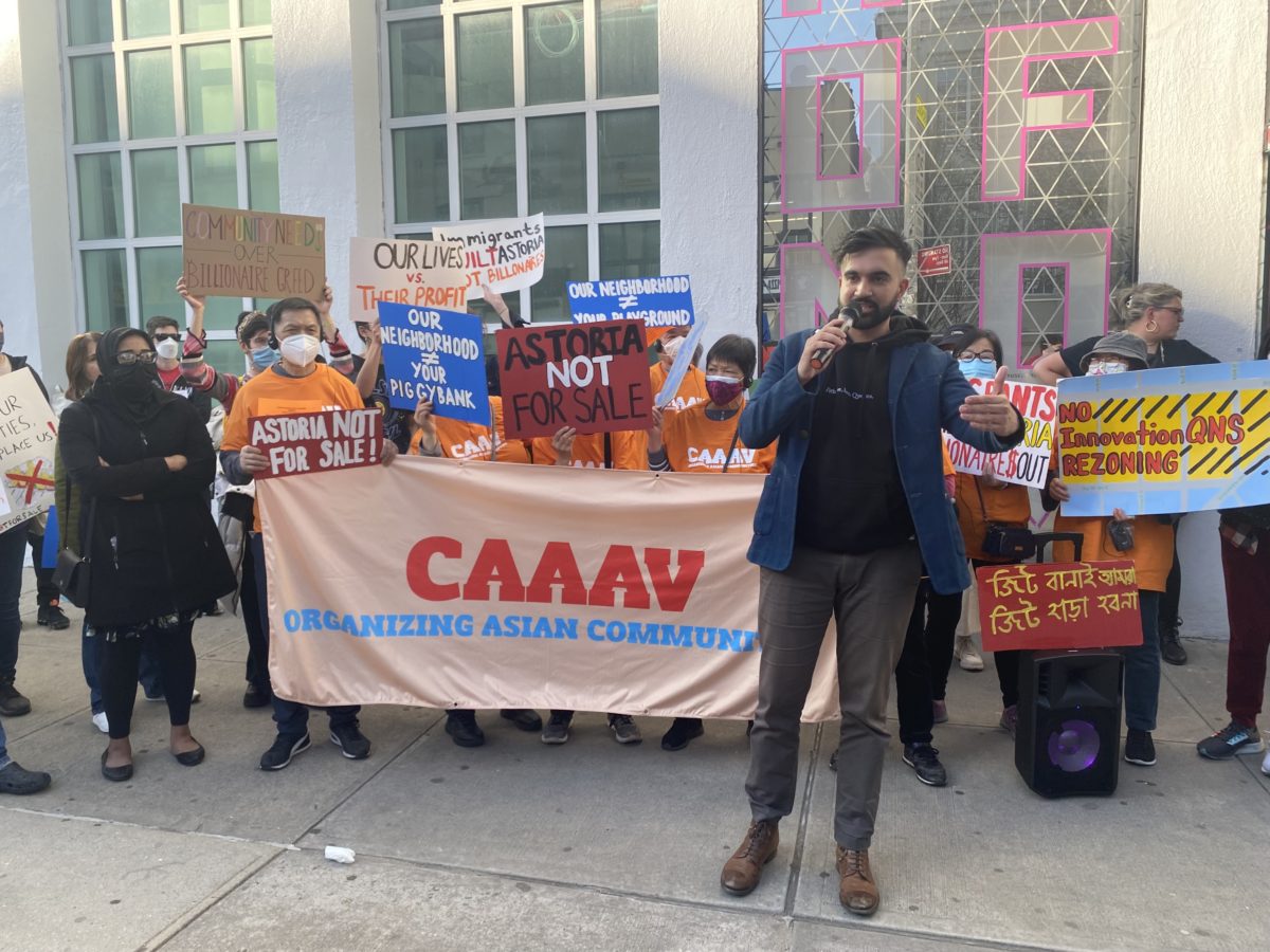 A rally outside the town hall, organized by CAAAV: Organizing Asian Communities, Astoria Not For Sale, Woodside on the Move , Astoria Tenants Union, Justice For All Coalition and Western Queens Community Land Trust , pointed out the flaws in Innovation QNS’ outreach approaches, as well as other reasons why they believe the project would be a disservice to the community.