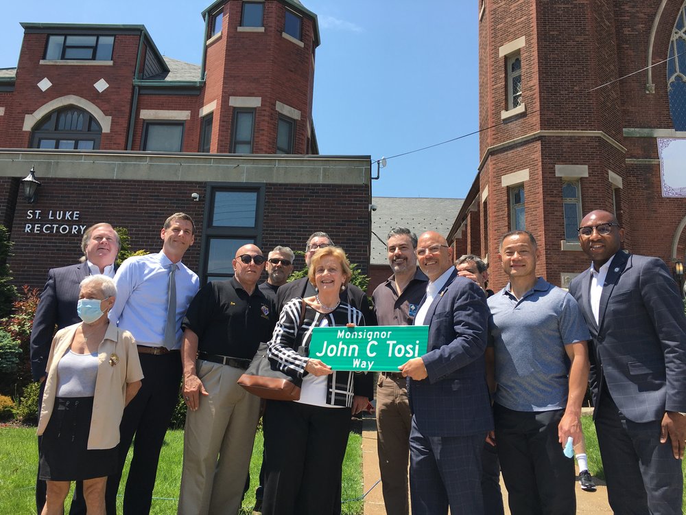 “It can be a little intimidating to think that I am going to be the pastor on Monsignor John Tosi Way,” said Tosi’s successor, Father John Costello. “Not Monsignor John Tosi Street, not Monsignor John Tosi Avenue, Monsignor John Tosi Way.