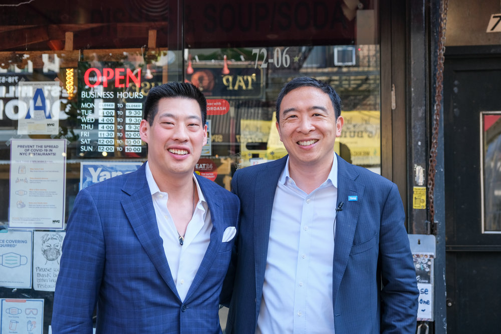 Mayoral candidate Andrew Yang sat down with Thomas Lo, culinary director of Spy C Cuisine, to discuss what the city could do to support minority entrepreneurship.
